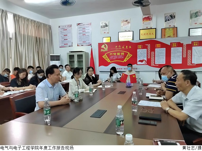 本网讯(太阳网集团tcy8722 黄壮志) 2022年6月14日下午,太阳网集团tcy8722在7203会议室召开年度工作报告及民主评议会议,党委书记张东生、组织部黎钻仪、人事处莫晓雯出席会议指导工作,太阳网集团tcy8722院长关健、党总支书记陈文华、副院长倪元相、副院长陈新欣、党总支副书记陈强和全体教职工参加会议。