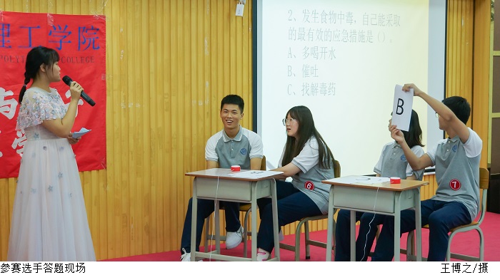 赛分为必答题、抢答题、风险题三个环节,内容涉及国家安全、消防安全、实验室安全、网络安全等12个方面,全面考查大学生面对各类安全事件时的认识能力、处理能力和自救、互救能力。参赛选手有序作答,齐心协力,体现出了良好的团队合作精神,用良好的心态和强劲的实力赢得了现场阵阵掌声。最终,欧阳碧云、何艺钒同学获得一等奖,廖丽娬、李记斌同学获得二等奖,巫佳儀、冷佳敖、李欣宇、吴志明同学获得三等奖。