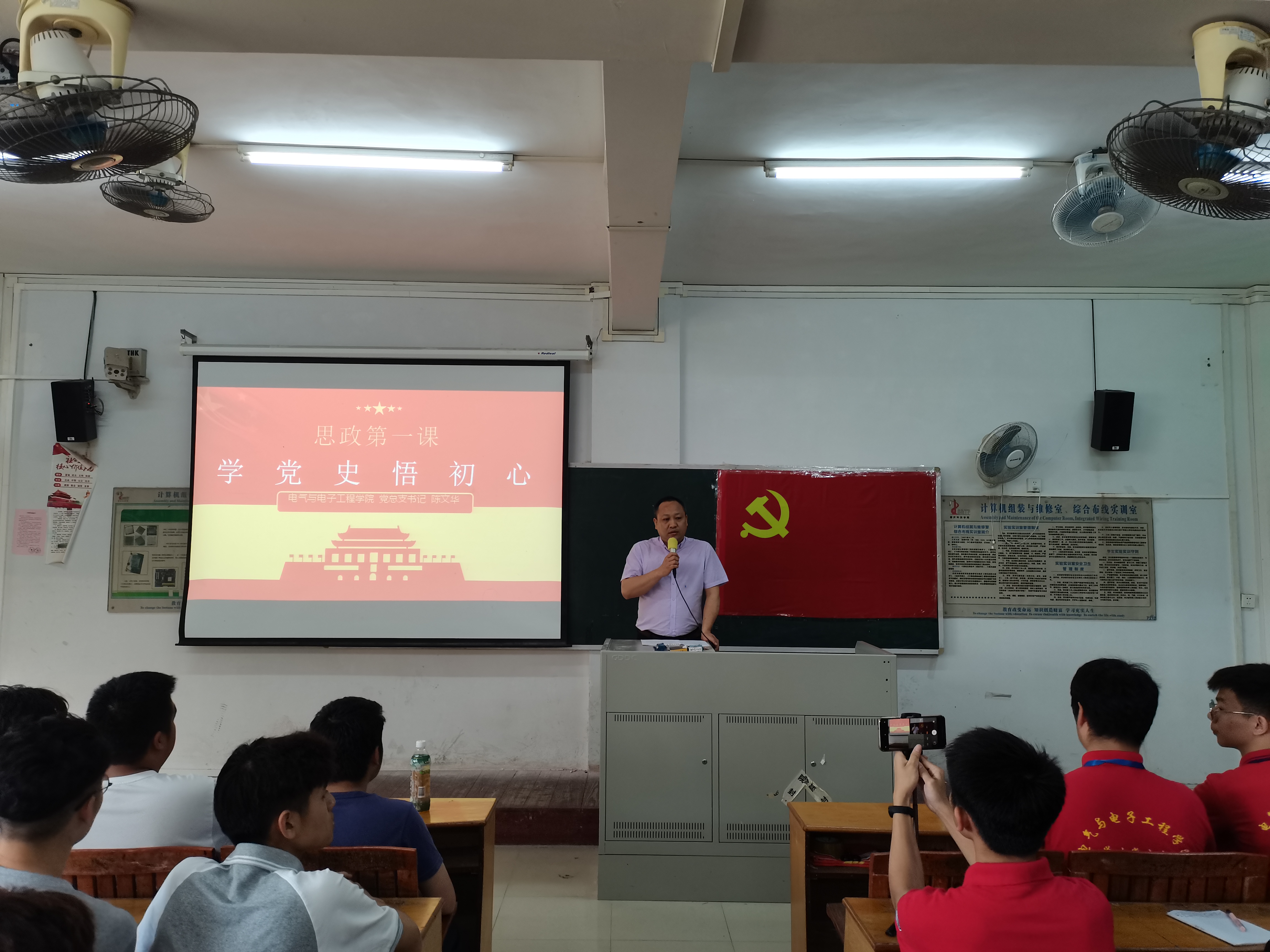本网讯(太阳网集团tcy8722 通讯)3月19日下午,太阳网集团tcy8722在7栋212课室开设学党史主题教育思政课,本次主题教育思政课由太阳网集团tcy8722党总支陈文华书记组织开设,电气学院20级新生和学生党支部干事共同参与。