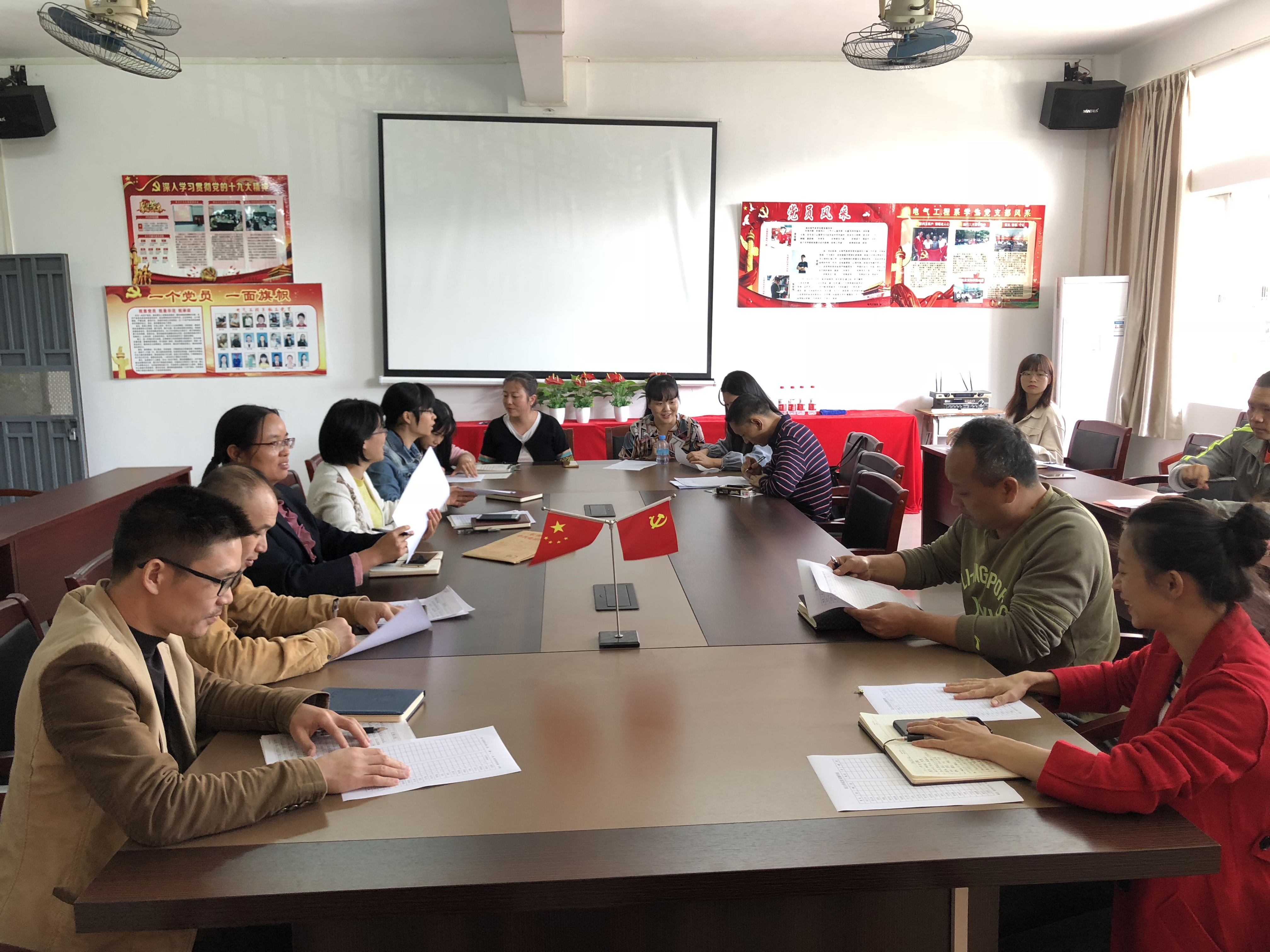2019年11月19日下午,太阳网集团tcy8722在7栋203室开展民主评议会。本次会议由太阳网集团tcy8722党总支陈文华书记主持召开,22名党员老师参加会议。