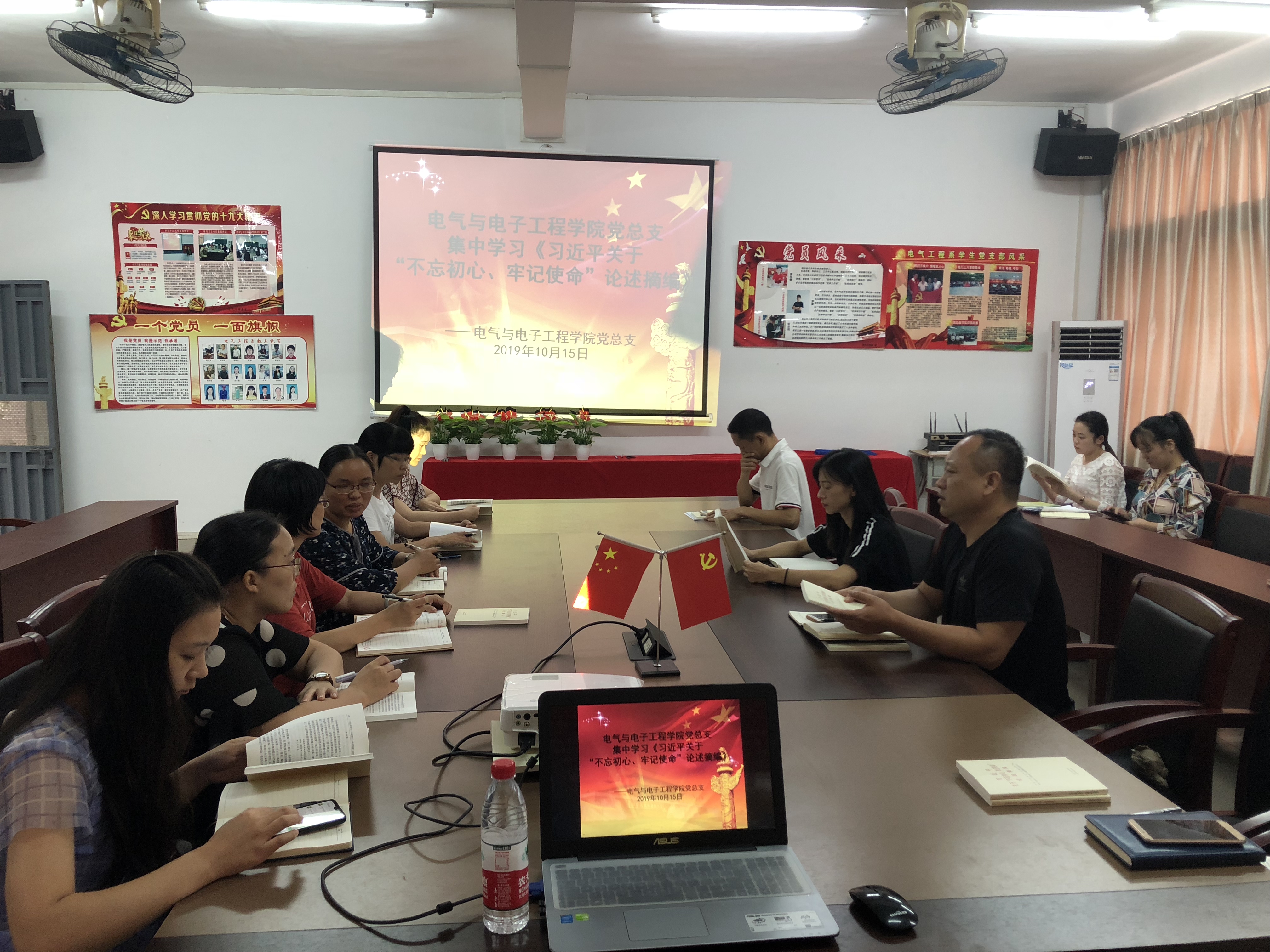 2019年1015日下午,太阳网集团tcy8722党总支陈文华书记在7栋203室开展学习会,召集我院党员集中学习《习近平关于“不忘初心、牢记使命”重要论述摘编》