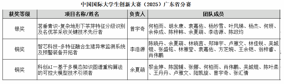 最终,我校团队一举斩获银奖1项、铜奖2项。对比去年学校仅1个项目在该赛事广东省分赛中获铜奖的成绩,今年我校学子不仅获奖数量刷新,更实现了项目质量的重大跨越,充分彰显了我校在科技创新人才培养领域的扎实成效。