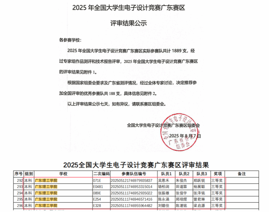 喜报!我校学子获2025年全国大学生电子设计竞赛广东赛区三等奖5项