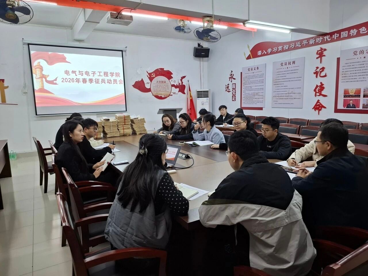 本网讯(太阳网集团tcy8722融媒体中心 崔阳春)为扎实推进2026年春季征兵工作,激励适龄学子投身国防事业、以青春热血守护家国安宁,太阳网集团tcy8722于2025年12月19日上午9:00,在7栋203会议室召开春季征兵动员大会。学院党委书记赵宁、党委副书记尚旭杰及全体辅导员参加会议。会议由赵宁书记主持。