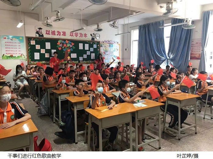 课堂上,干事们通过趣味教学的形式,将雷锋故事、雷锋精神、红色歌曲等知识分享给小朋友们,课间休息时干事们与小朋友们一起唱歌、聊天、做游戏,教学过程氛围融洽,赢得陪同老师们一致好评。