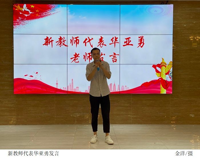 随后,对新加入的教师表示欢迎。新教师代表华亚勇发言表示,在今后的工作中将落实“立德树人”根本任务,安心教学,潜心科研,团结协作,以优秀教师为榜样,把“为党育人、为国育才”作为自己职业初心与事业使命的标尺,成为“四有”好老师。
