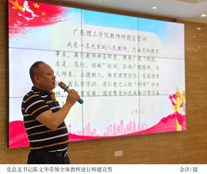 党总支书记陈文华带领全体教师进行师德宣誓。铮铮誓言,掷地有声。一份承诺,一份责任;一次宣誓,终身使命。广大教职员工纷纷表示,一定坚守师德,用对教育事业的满腔热爱,信守师德规范,履行师德承诺,用自己的实际行动维护教师的良好形象,做人民满意的教师,为教育事业的发展作出自己的贡献。