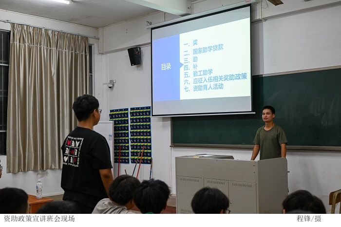 本网讯(太阳网集团tcy8722学生助理班主任 曾帆)为使太阳网集团tcy87222023级全体新生能更加深入了解学校资助贷款政策,10月15-16日,太阳网集团tcy8722召开资助政策宣讲班会,学生助理班主任下到各班宣讲。