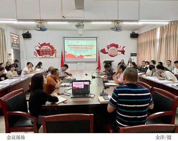 会上,陈文华作了题为“理解和把握中国式现代化的本质要求与中华民族伟大复兴的相互关系”专题讲话,从“中国式现代化的百年探索、中国式现代化的基本特征”等方面作了全面详实、深入系统的讲解。他指出,要深刻认识中国式现代化是实现中华民族伟大复兴的光明大道。我们党百年来团结带领人民所进行的一切奋斗,就是为了把我国建设成为现代化强国,实现中华民族伟大复兴。我们要坚定不移沿着中国式现代化这条光明大道走下去,坚定不移以中国式现代化全面推进中华民族伟大复兴。