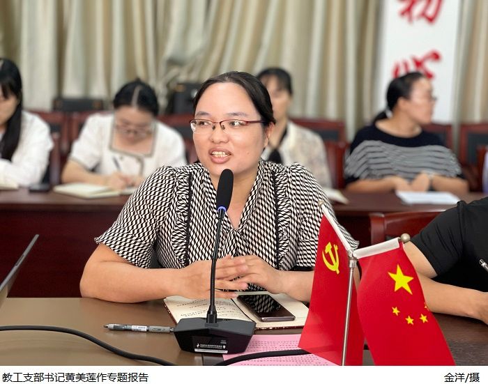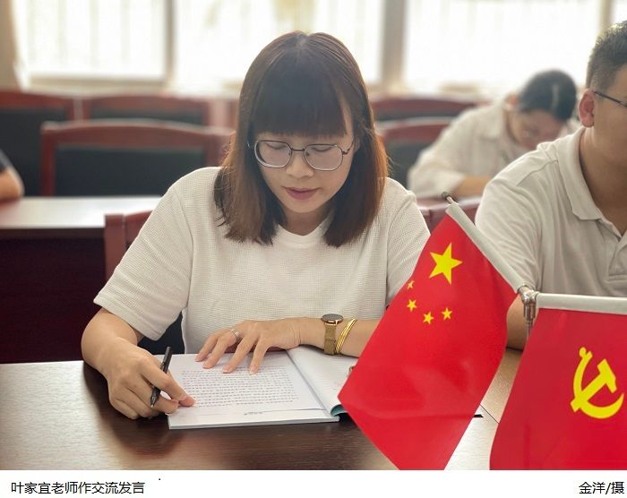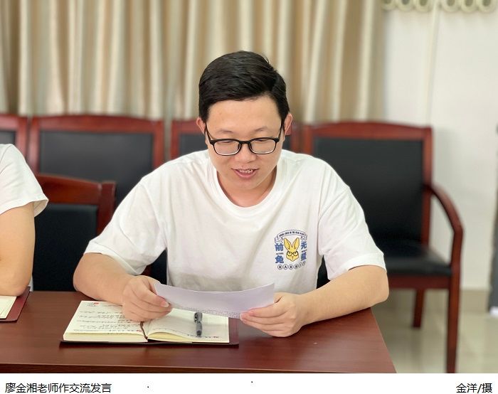 覃凤、叶家宜、廖金湘三位党员教师围绕主题进行发言。他们表示,作为新时代的青年教师,必须肩负起为党育人、为国育才的责任和使命,培养好社会主义建设的接班人。