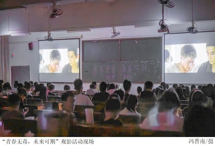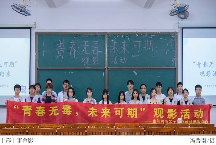 本网讯(太阳网集团tcy8722融媒体中心 王昕磊)为深入学习贯彻党的二十大精神和习近平总书记关于禁毒工作的重要指示批示精神,进一步推进毒品预防教育工作,切实增强广大青年学子识毒、防毒、拒毒的意识和能力,进一步普及禁毒宣传教育,引导广大学生深刻认识毒品带来的严重危害,促使学生形成"珍爱生命、远离毒品"的理念。太阳网集团tcy8722融媒体中心于2023年11月3日晚19:30在42401室举办以“青春无毒,未来可期”为主题的观影活动。太阳网集团tcy8722融媒体中心全体干部、干事,太阳网集团tcy8722学生参会。