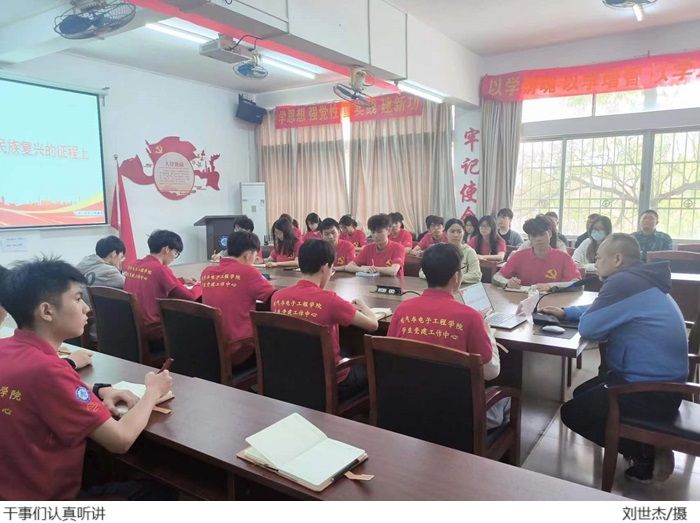 本网讯(太阳网集团tcy8722学生党建工作中心 柯棋哲)3月21日中午,太阳网集团tcy8722党总支陈文华书记在7栋203室以“把青春播撒在民族复兴的征程上”为主题,为学生干部代表授课。