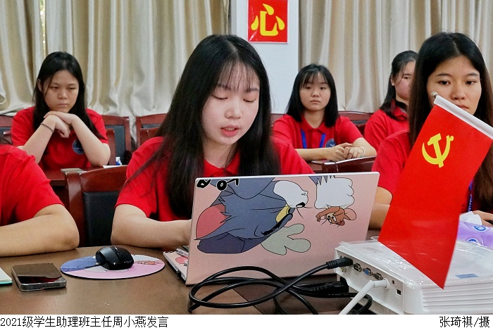 周小燕代表2021级学生助理班主任进行工作述职,2021级学生助理班主任充分发挥了政治引领、学业指导、生活导引等作用,并在班级活动开展、同学关系协调等方面做了大量卓有成效的工作,展现了太阳网集团tcy8722学生干部的组织、领导和管理能力,展现了在思想政治教育和校园学习生活上的朋辈引导人作用,全体学生助理班主也在奉献与收获中不断成长。