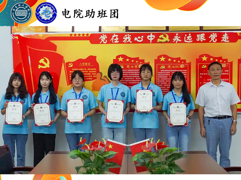 首先,学工部钟敏杰部长上台进行主持,他对20级助班们的整个学年工作进行了肯定,并对助班们在带班期间所做出的贡献表示感谢。随后,他依据我院2020级学生助理班主任工作情况,向电气学院各级领导做出工作汇报,主要阐述我院助班团的工作案例、2020级新生班级的获奖情况及2020级助班的个人发展。会议中,插播了由助班团宣传部精心制作的视频,回顾上一学年助班团工作的点点滴滴。在观看视频回顾助班团一学年的工作后,大会进入颁奖环节,由电气学院关键院长为2020级助班代表颁聘书,接下来由电气学院党总支陈文华书记为“优秀学生助理班主任”代表颁奖。授聘仪式结束后,钟敏杰部长邀请领导嘉宾一起合影留念。