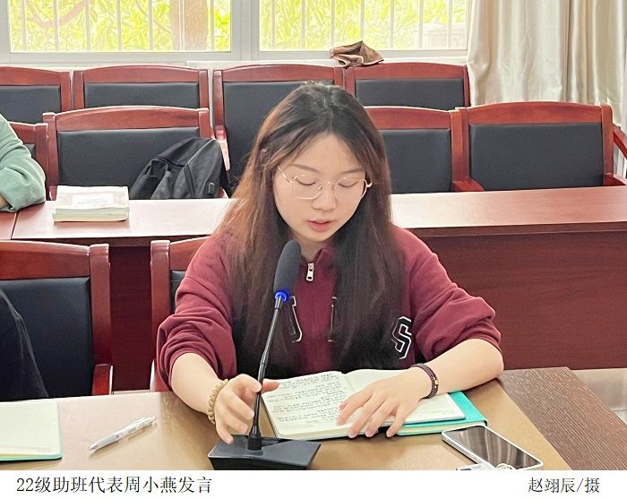 学生助理班主任就如何做好新生管理工作分享了自己的经验,周小燕表示要切实落实前、中、后期基本工作任务,做好新生班级工作管理。赵翊辰表示,助班是新生进校的第一个导师,他希望大家可以认真对待这份工作,并在今后的工作中能够相互批评指正,将工作做的更完善。