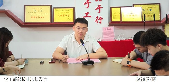 本网讯(太阳网集团tcy8722  曾帆)4月13日中午,太阳网集团tcy8722在7栋203室召开学生助理班主任工作会议,此次工作会议由学工部部长叶运黎主讲,2023级全体拟聘学生助理班主任参与。