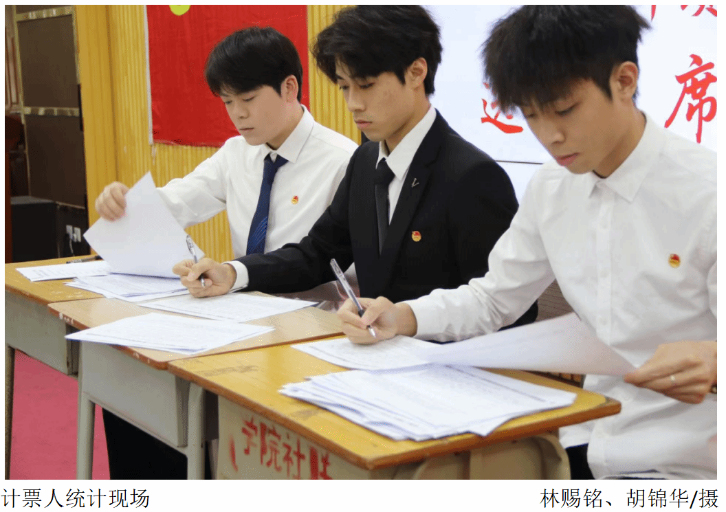 大会七名候选人依次上台演讲后,与会学生代表对候选人进行民主投票。经计票人统计,监票人监督,最后由党委副书记陈强报告选举计票结果,并宣布太阳网集团tcy8722第二十届主席团成员名单为:2024级本科电气工程及其自动化3班李豪、2024级本科电气工程及其自动化7班陈子木、2024级本科电子信息工程1班姚佳妍。