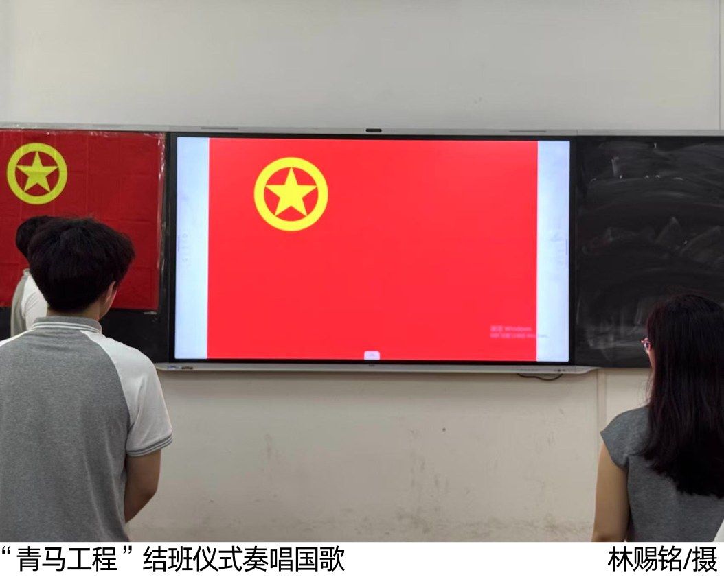最后,全体成员起立,奏唱团歌。仪式结束后,全体人员合影留念,为本次“青马工程”结班仪式画上圆满句号。
