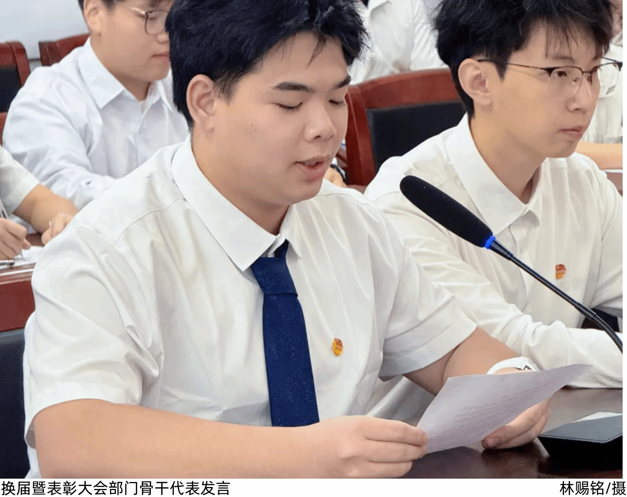 第二十届部门骨干代表林翔煜致谢前辈,分享从青涩到成熟的成长历程,承诺传承优良作风,创新活动形式,助力成员发展。