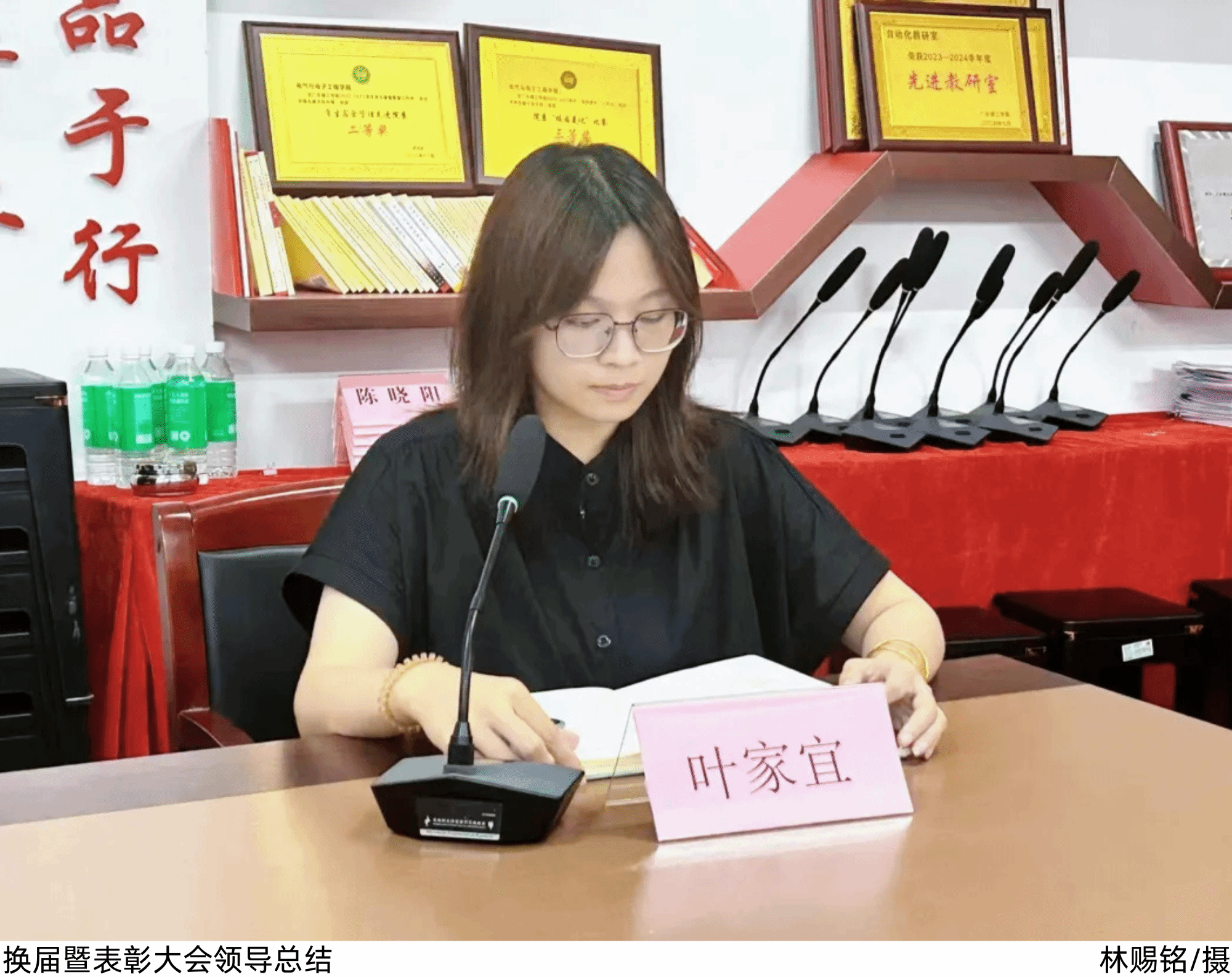 最后,电气学院团委书记叶家宜充分肯定全体工作人员过去一学年的付出,认可内部管理优化、部门协作强化、实践平台搭建等工作成果。她希望新一届成员传承创新、担当有为,以青春力量推动学院发展。