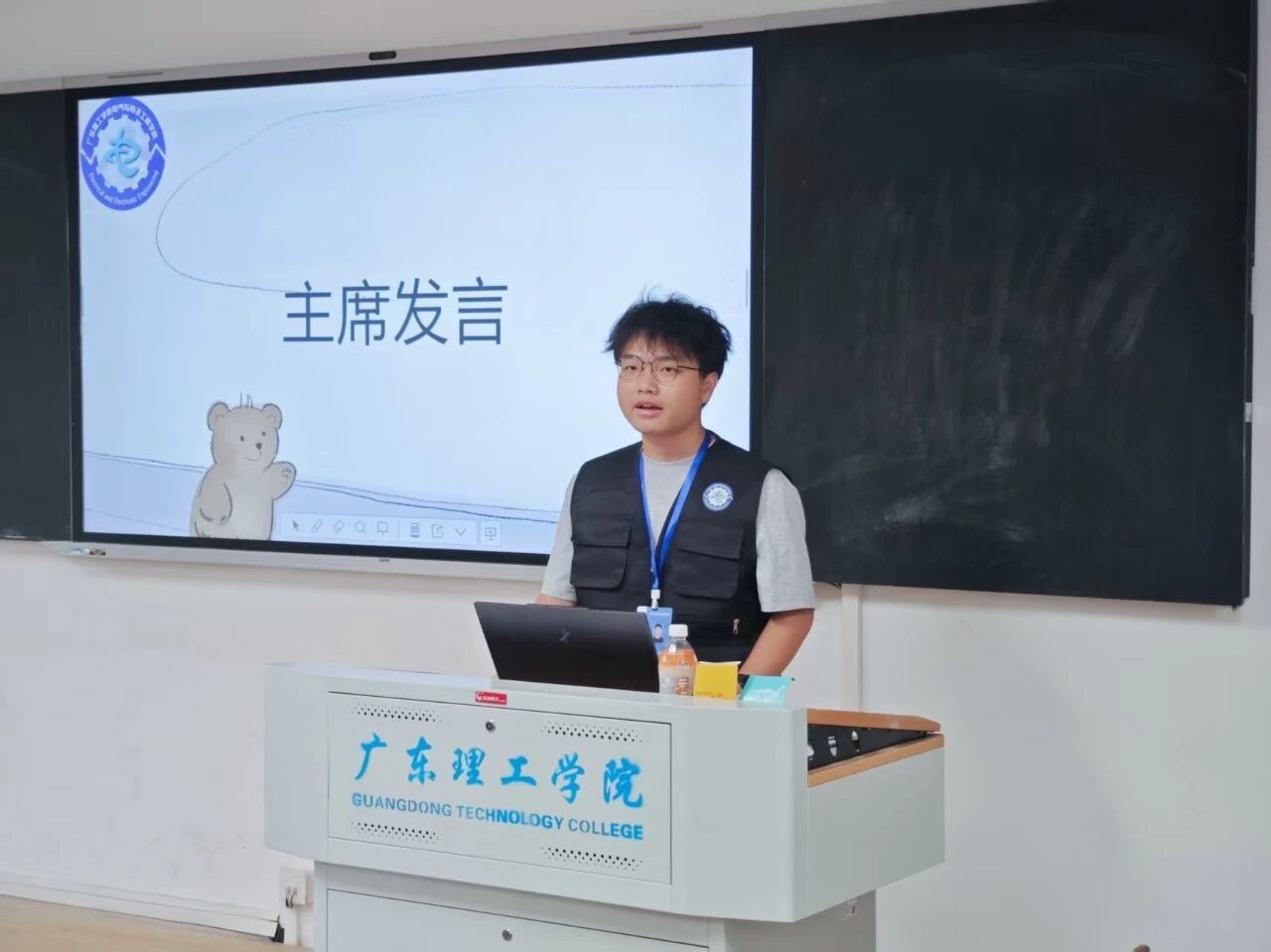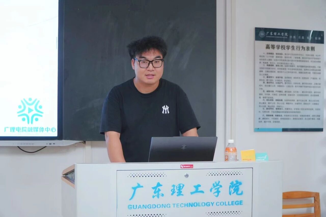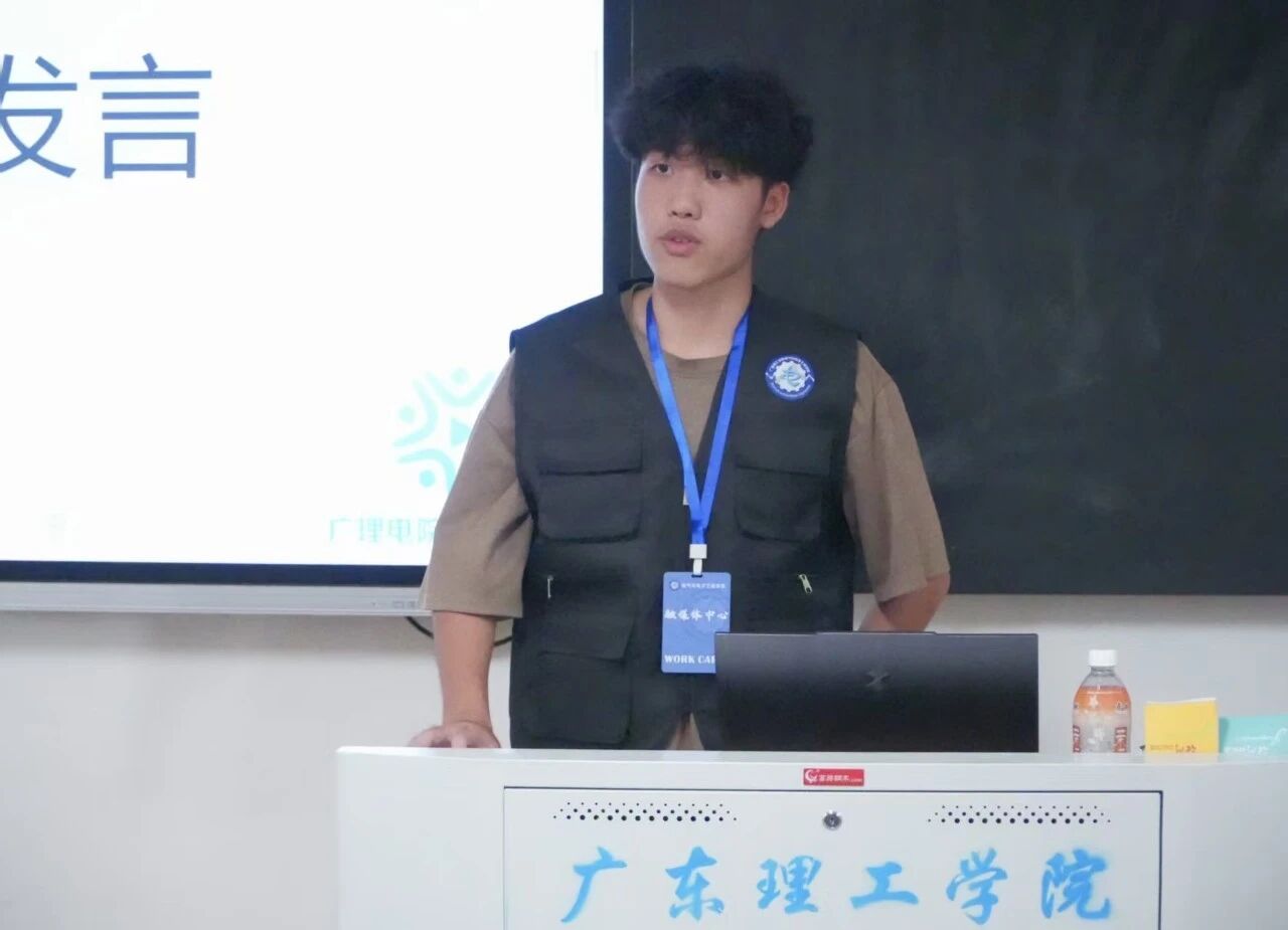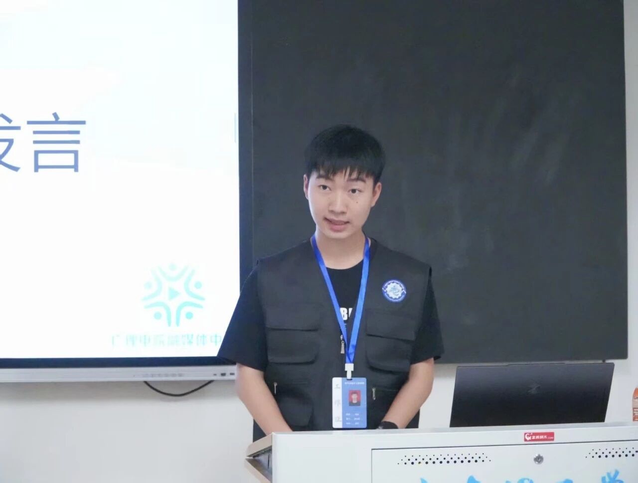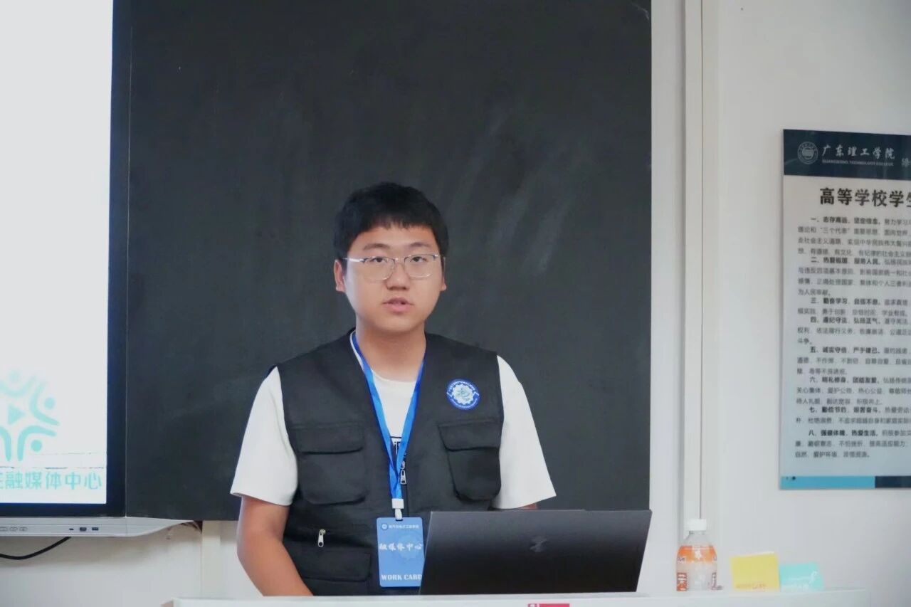宣传部副部长黄誉滔首先热烈欢迎新成员加入融媒体中心!然后表示作为学校传信息、弘文化的核心平台,此前宣传部主要负责三项工作:为国庆中秋双节活动、后续摄影活动等撰写严谨创新的策划案,制作主题匹配、逻辑清晰、视觉美观的高质量PPT,以及统筹活动颁奖事宜。这些工作虽常规,却十分考验专业能力、责任意识与协作精神,过程中可能面临方案修改、PPT打磨的挑战,但活动圆满落幕时的成就感与成长,都将成为宝贵财富。新学期期待全体成员以高度责任感投入,在经验分享与“事事有回应,件件有着落”的实践中,于这个大家庭收获成长。