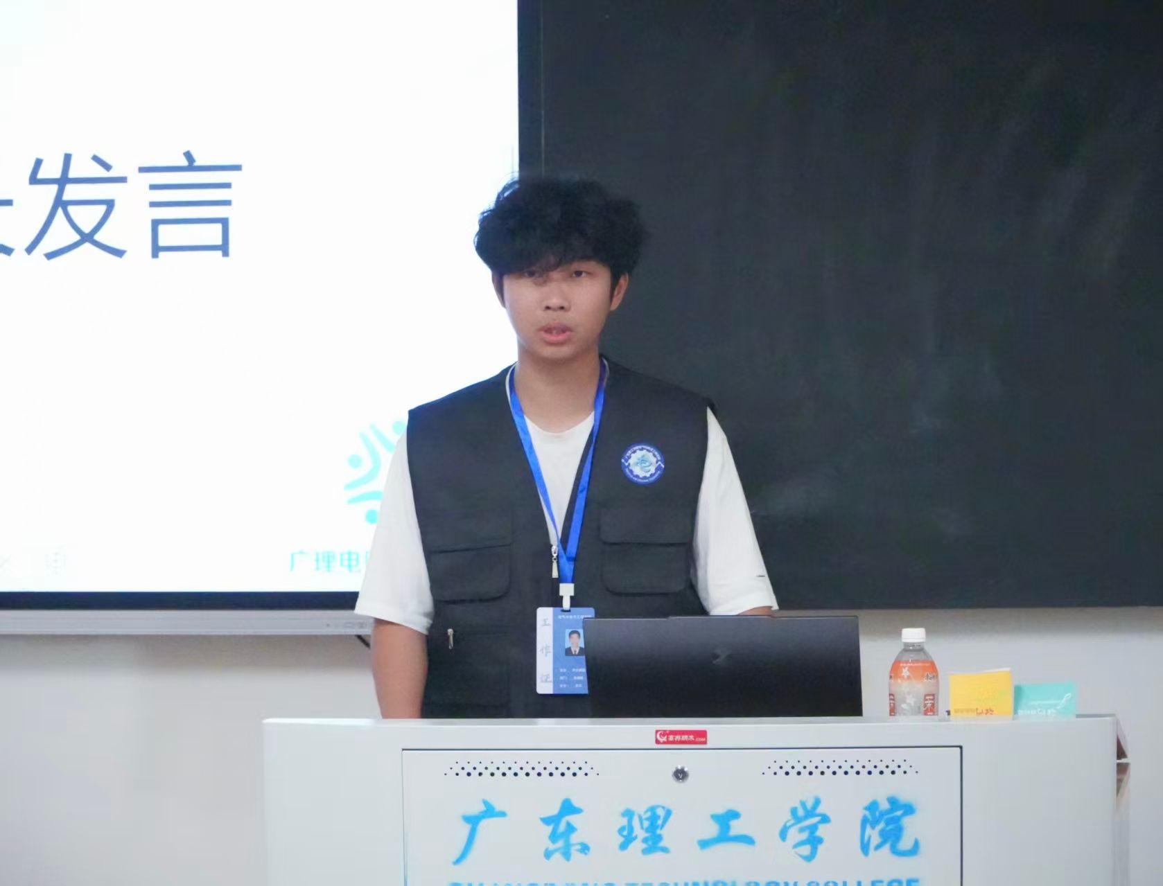 林正浩首先感谢指导老师张彬的栽培与师兄师姐的付出;随后,他说明新学年技术部负责假条、证明等制作及统分系统掌握,目前已掌握部分技能,希望各部门多交流并举荐人才;最后,他表示未来会倾囊相授新同学,保持严谨态度确保数据无误,预祝招新顺利、融媒体中心发展更好。