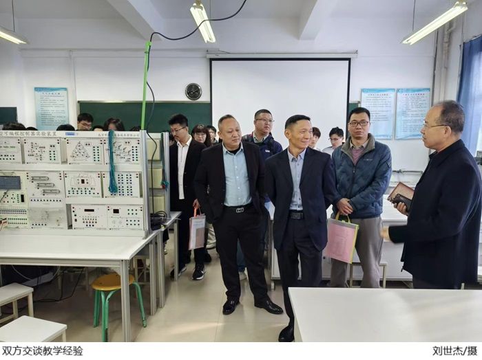 会上,陕西科技大学电气与控制工程学院院长汤伟首先对我院一行人表示诚挚欢迎,并简要介绍了陕西大学及电气与控制工程学院的发展历程及现状。对方院系代表分别就教学安排、太阳集团、学生就业、实验室管理等方面展开讨论。随后,我院院长倪院相介绍学院的基本情况和发展愿景,他特别强调,此次访学的主要目的是学习和借鉴陕西科技大学在专业设置、课程体系等方面的先进经验,以期为本院的教学改革提供有益参考以及学习如何更好地指导和支持学生在学习和就业道路上取得成功。双方还围绕教学模式创新、学科建设等多个议题展开了深入讨论。会后,在汤伟的带领下,我院访学团还参观了学院的实验室,对其实验教学环境和设施有了直观的认识。