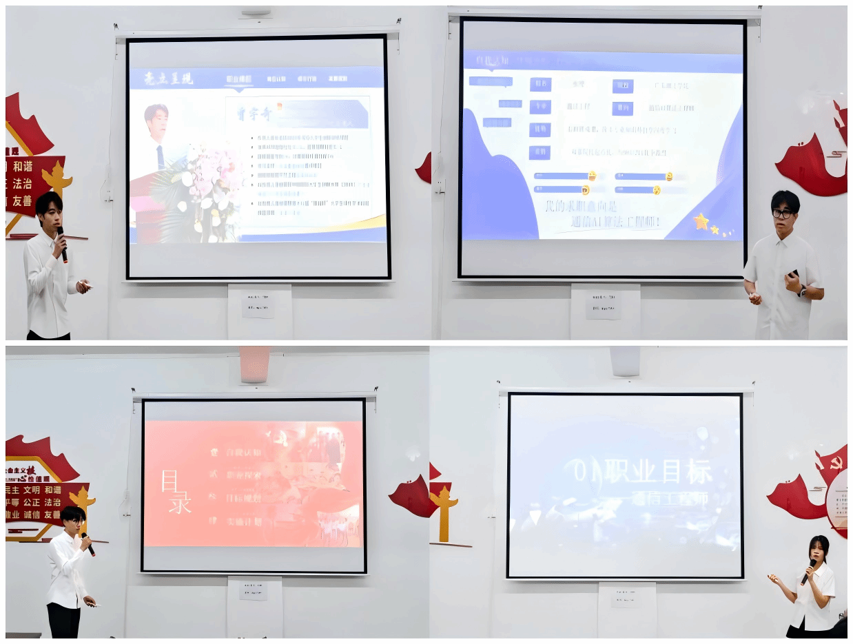 本次决赛设置成长赛道与就业赛道两大竞赛单元,为不同发展阶段的学生提供了精准的展示与竞技平台。比赛现场,成长赛道的选手们以详实的生涯发展报告为核心,用富有感染力的表达清晰勾勒职业成长路径。他们结合自身性格特质与专业能力优势,将长期职业目标进行阶段性拆解,从课程学习规划到实践能力培养,从专业技能提升到综合素质拓展,每一个环节都彰显出对个人成长的清晰认知与主动规划意识。