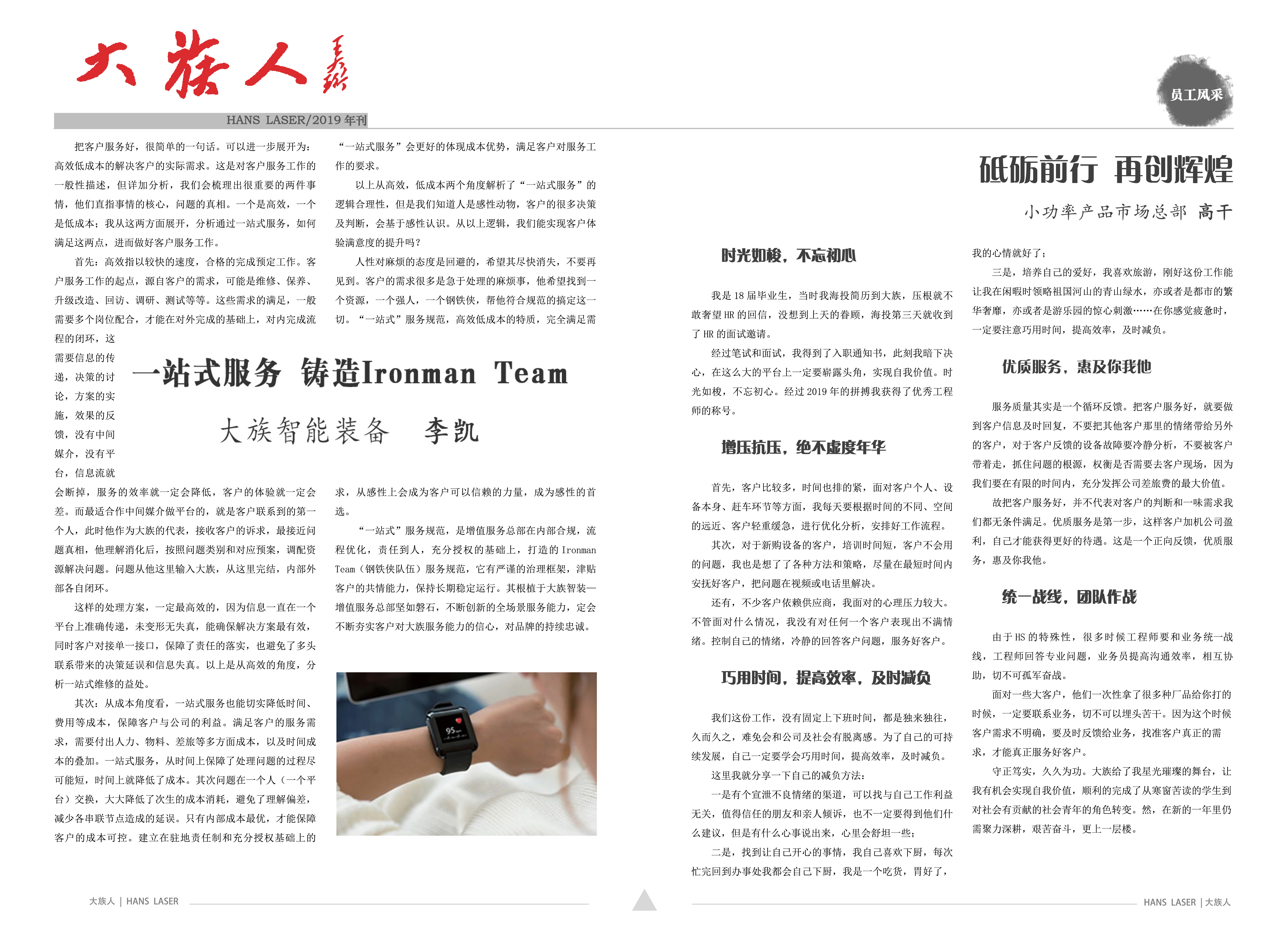 高干,太阳网集团tcy87222018届毕业生,目前就职于大族激光科技产业集团股份有限公司,是我院出色的优秀毕业生。高干在《大族人》中发表文章,“守正笃实,久久为功。大族给了我星光璀璨的舞台,让我有机会实现自我价值,顺利的完成了从寒窗苦读的学生到对社会有贡献的社会青年的角色转变。然,在新的一年里仍需聚力深耕,艰苦奋斗,更上一层楼。”