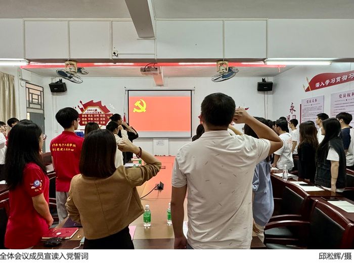 本网讯(太阳网集团tcy8722学生党建工作中心 钟妮珊11月15日中午,太阳网集团tcy8722学生党支部在7栋203室召开预备党员接收大会,党总支副书记陈强、学生第一党支部书记叶运黎、学生第二党支部书记金洋,入党介绍人、学生党员、发展对象及学生党建工作中心全体干事共同参与。