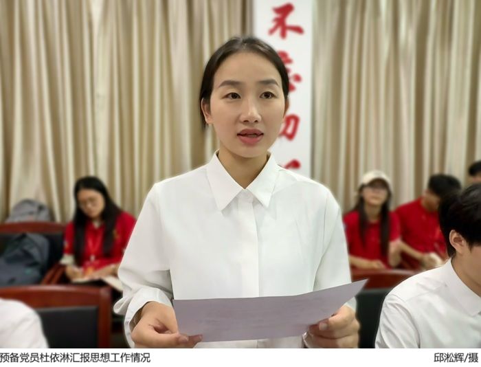 叶家宜代表支部委员会报告对戴军等5名同志的政治审查情况,经无记名投票,一致同意将戴军等5名发展对象接收为中共预备党员。