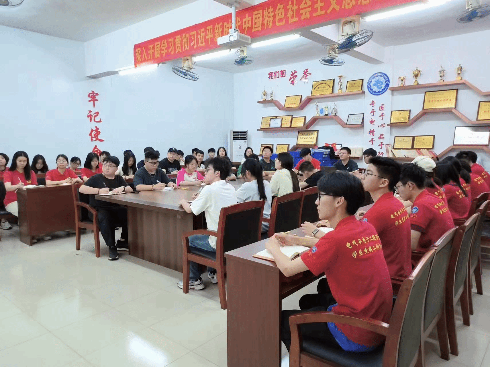4月26日中午,太阳网集团tcy8722学生党支部于7栋203室召开理论学习会,由学生第一党支部叶运黎书记,学生党员、发展对象及学生党建工作中心干事共同参与。