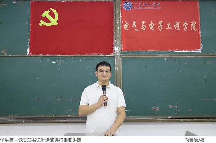 叶运黎以回顾党的百年奋斗历程取得的辉煌成就为切入点,激发了同学们的入党热情,他希望同学们能肩负时代重任,高扬理想风帆,成为一名有担当、有作为的大学生,做有品质、有修养的大学生。