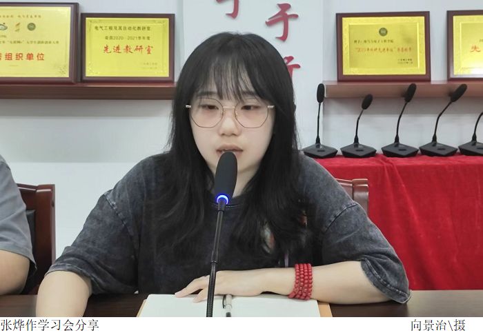 学生党员张烨以“新发展理念与马克思主义中国化”为主题,将学习马克思主义中国化现代化的最新成果、新发展理念是习近平经济思想的主要内容、中国式现代化的特征和新发展理念作为主要内容,并围绕“马克思主义中国化”提出了自己的见解。