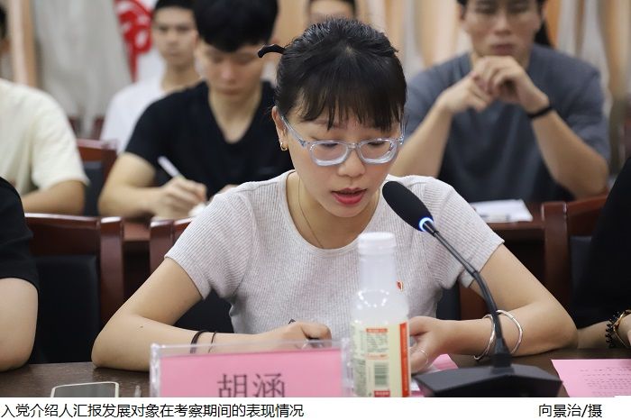 会上,柳柔泽等13名发展对象向党组织汇报在考察期间自身思想、学习、实践、生活等方面的情况,入党介绍人汇报发展对象在考察期间的表现情况,并就是否同意其加入党组织表明意见和态度。