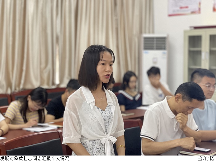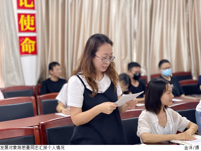 发展对象陈思曼、黄壮志同志分别宣读入党志愿书,汇报对党的认识、入党动机、本人履历以及需要向组织说明的问题;入党介绍人分别向大会介绍其主要情况,并对其能否入党表明态度;与会党员就发展对象是否符合党员条件发表了意见。大会认为,陈思曼、黄壮志同志符合中国共产党党员条件,经与会正式党员投票表决,大会一致同意接收陈思曼、黄壮志同志成为中共预备党员。