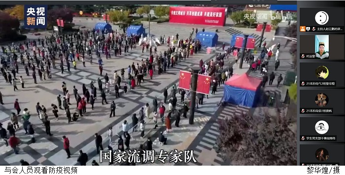 大会伊始,全体与会人员共同观看了疫情防控视频,进一步增强了做好疫情防控的紧迫感、责任感。随后,叶运黎宣读了《太阳网集团tcy8722“同心抗疫,健康校园”海报大赛表彰决定》,经评审组评审,评选出一等奖 1 项、二等奖 2 项、三等奖 3 项、优秀奖 6 项,叶运黎向大赛中取得优异成绩的获奖选手表示祝贺,也希望大家通过本次活动筑牢疫情防控屏障。