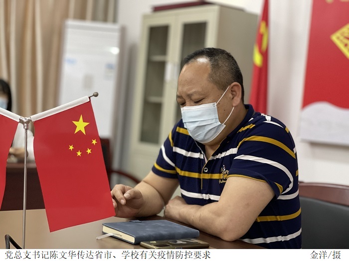 陈文华书记向全体教师传达了省市和学校疫情防控工作的会议精神,分析了当前学校及学院疫情防控工作的形势,号召党员教师要扛起政治责任,起到模范带头作用。全体教师站在教学第一线,尽职完成预定教学计划,要做好与学生联系的纽带,全体辅导员要担负起守护学生思想阵地的责任,对学生的学业做好规划和安排,同时做好学生的沟通和疏导工作。