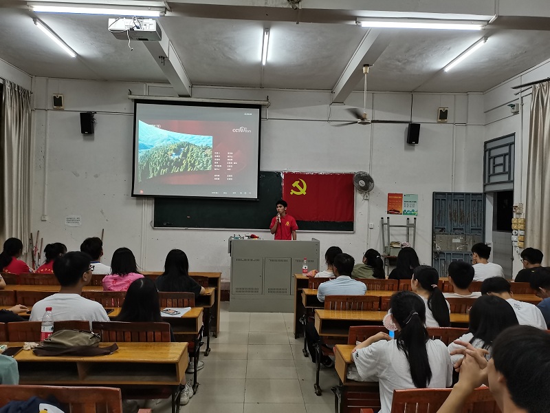 学生党支部干事陈企宙指出召开本次学习交流会的目的是深入贯彻落实习近平新时代中国特色社会主义思想,号召我院师生以时代楷模为镜,与榜样同行,增强大家的党性修养,凝聚榜样精神力量。观看直播过程中,参会人员全神贯注,认真学习彭士禄院士无私奉献的精神。陈企宙干事希望大家以专题片中的时代楷模为标杆,从自身做起,学习彭院士勤勉无私的精神,在日常生活中务实、奉献,做同学们心目中真正的榜样。