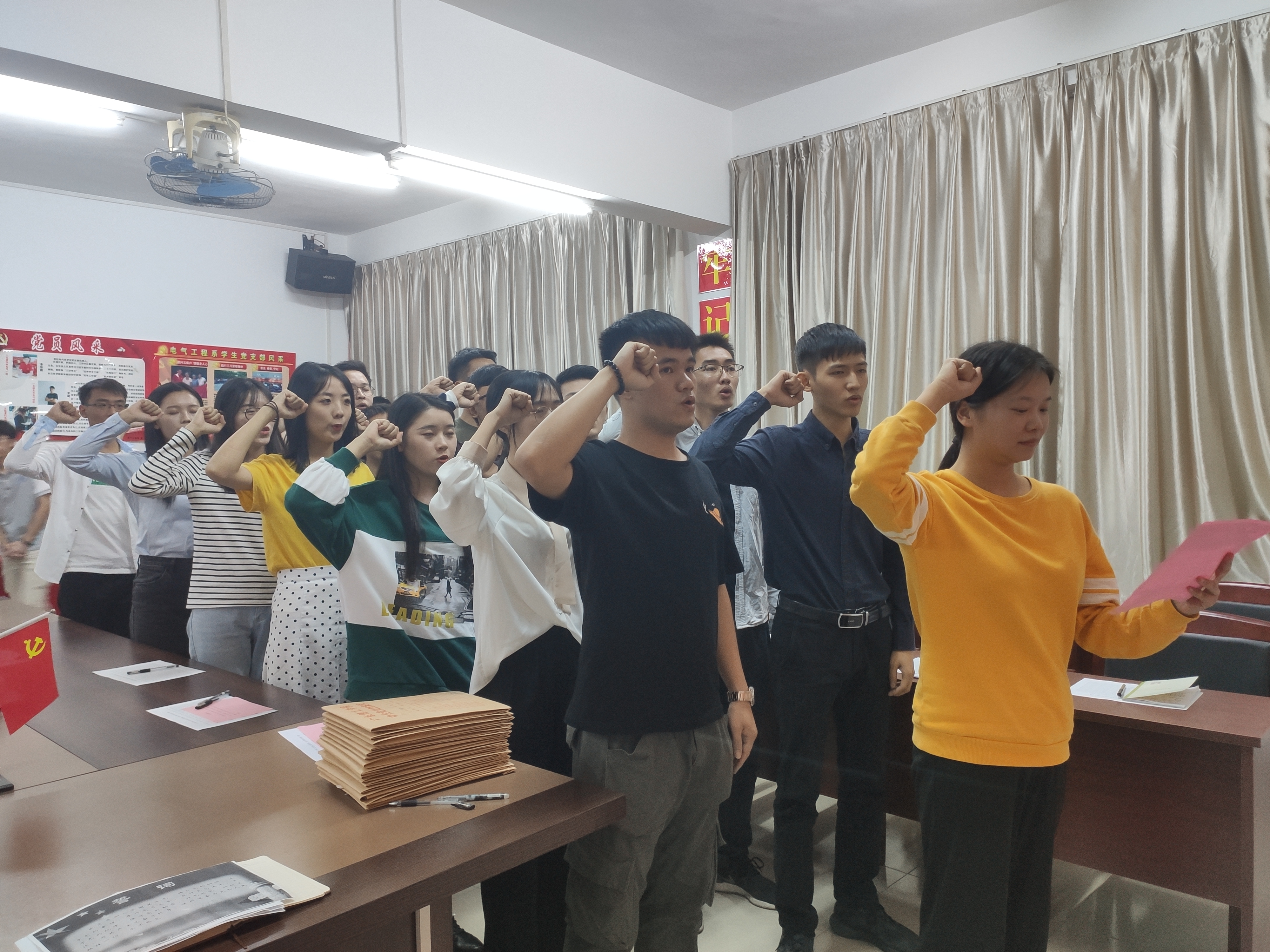 2019年11月08日下午,太阳网集团tcy8722于7栋203室召开第二十二期第一批预备党员转正大会。本次会议由太阳网集团tcy8722学生党支部书记何娟主持,党总支陈强副书记、辅导员钟敏杰老师、蔡瑞菁老师、王嘉晨老师、陈鸿才老师等党员老师以及李耀鑫等16位预备党员参加本次会议。应参会正式党员21名,实到17名,超过正式党员的2/3,本次支部党员转正大会有效。