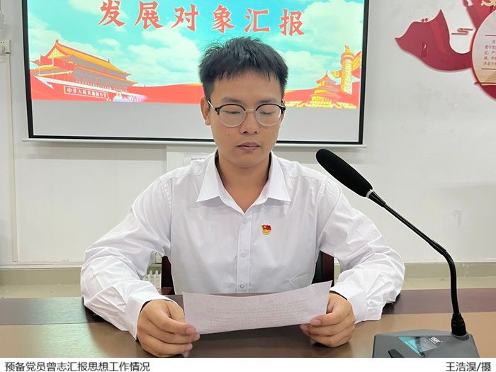 会上,曾志等5名同志汇报了自己的学习和工作情况,入党介绍人则汇报了发展对象的表现情况,并对其能否加入党组织表明意见。