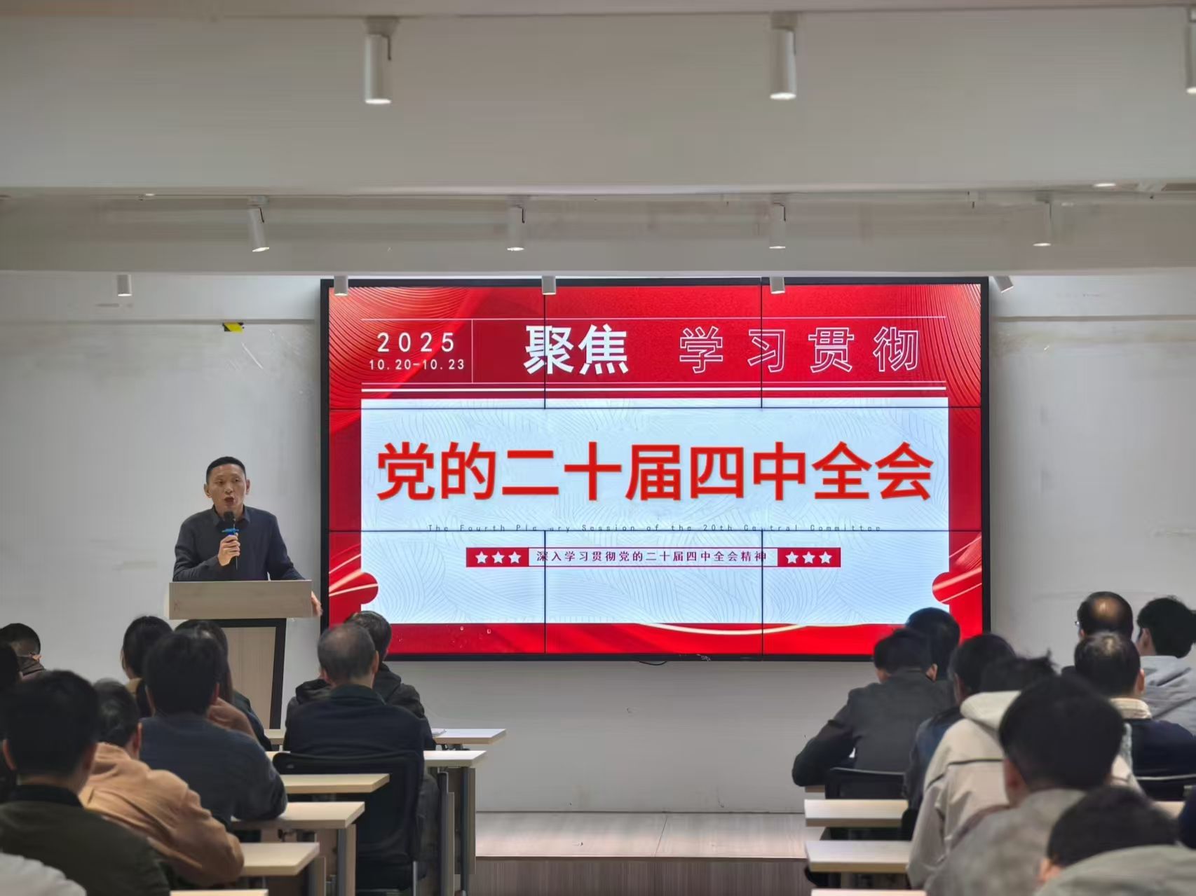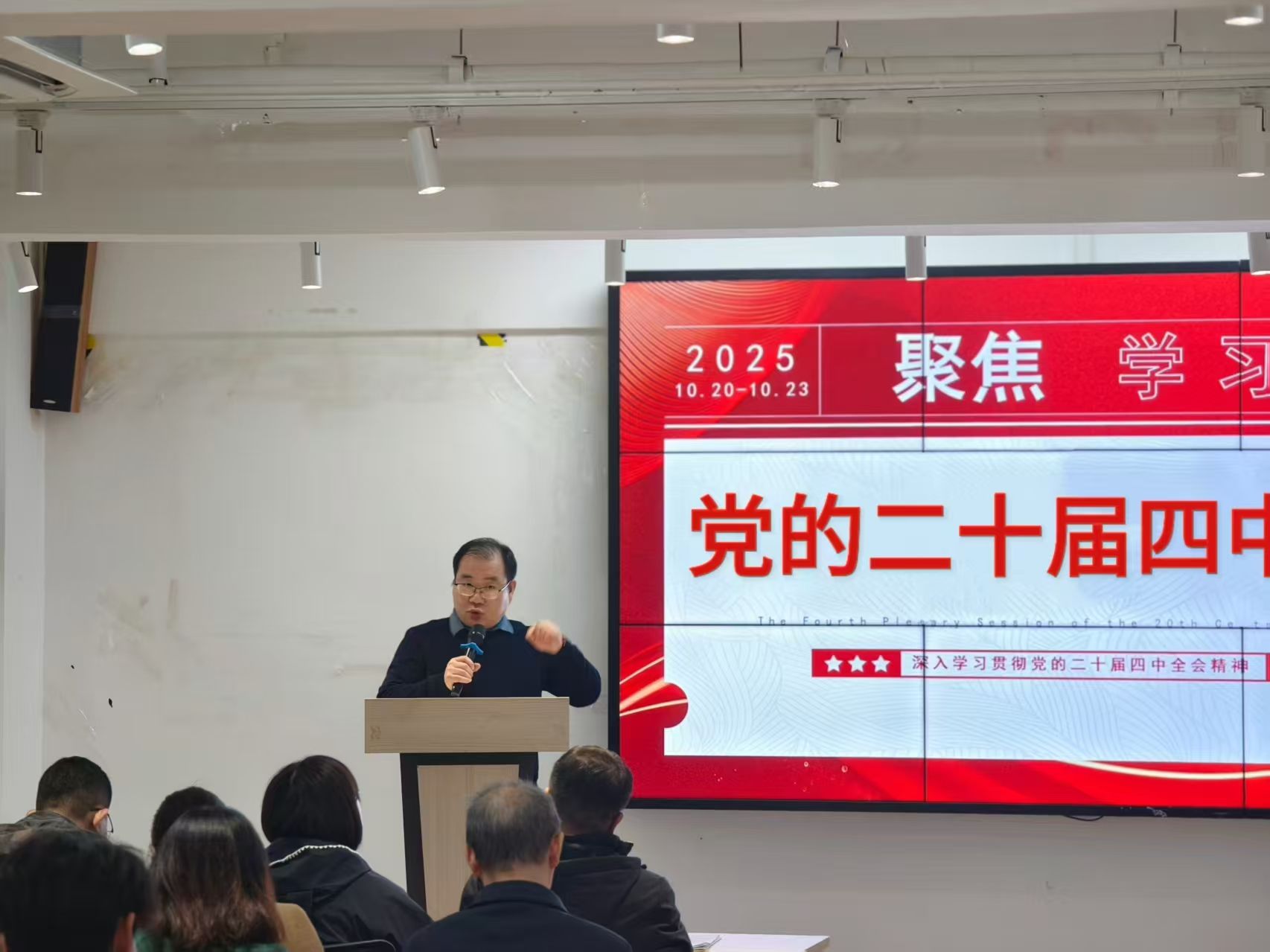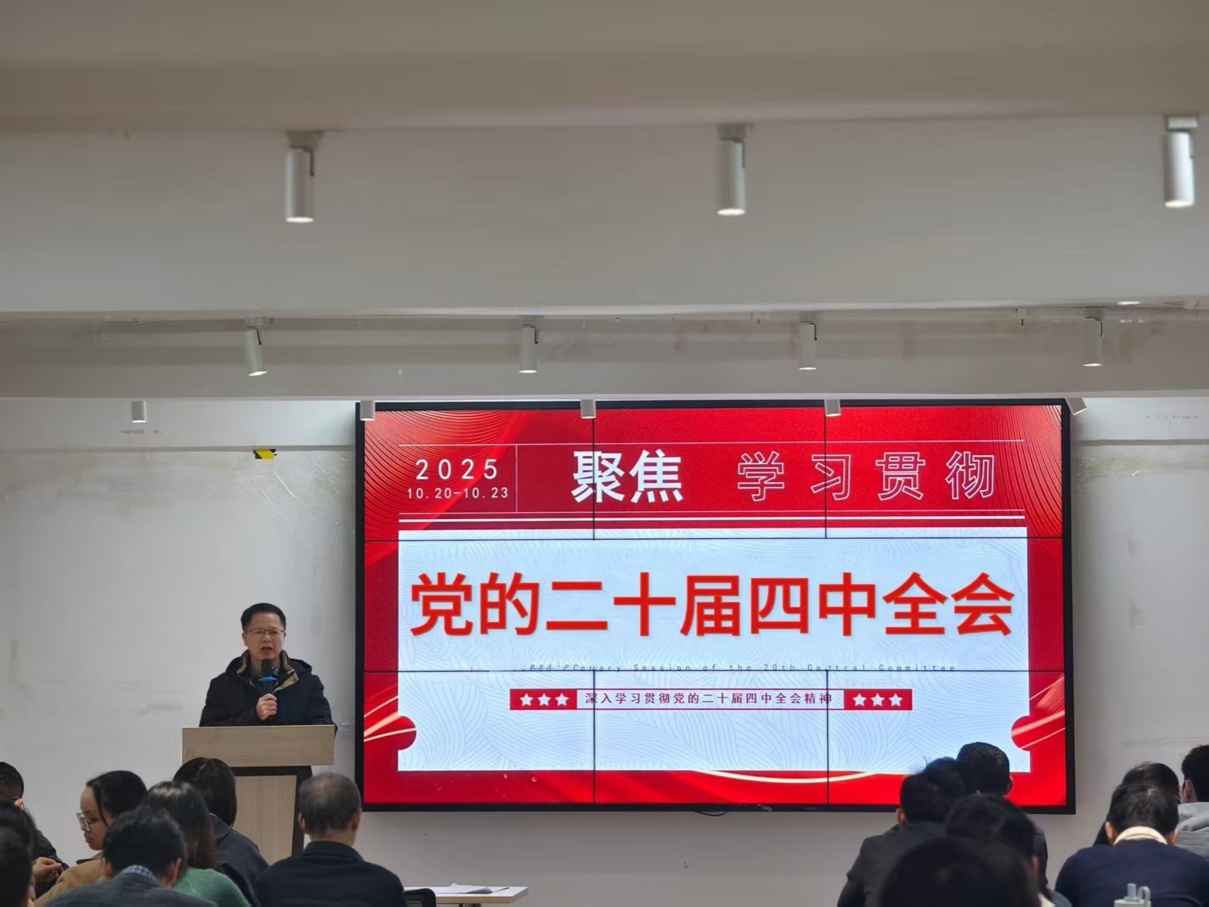 会议第一项,由党委书记赵宁领学党的二十届四中全会精神。赵宁书记系统解读了全会精神的重大意义、丰富内涵与实践要求,强调全体教职工要进一步提高政治站位,深刻领会党中央的战略部署,自觉将思想和行动统一到全会精神上来。他要求全体党员教师不仅要带头深入学习、融会贯通,更要紧密联系教学科研实际,面向学生积极开展宣传宣讲,切实推动党的创新理论在学院落地生根、深入人心。